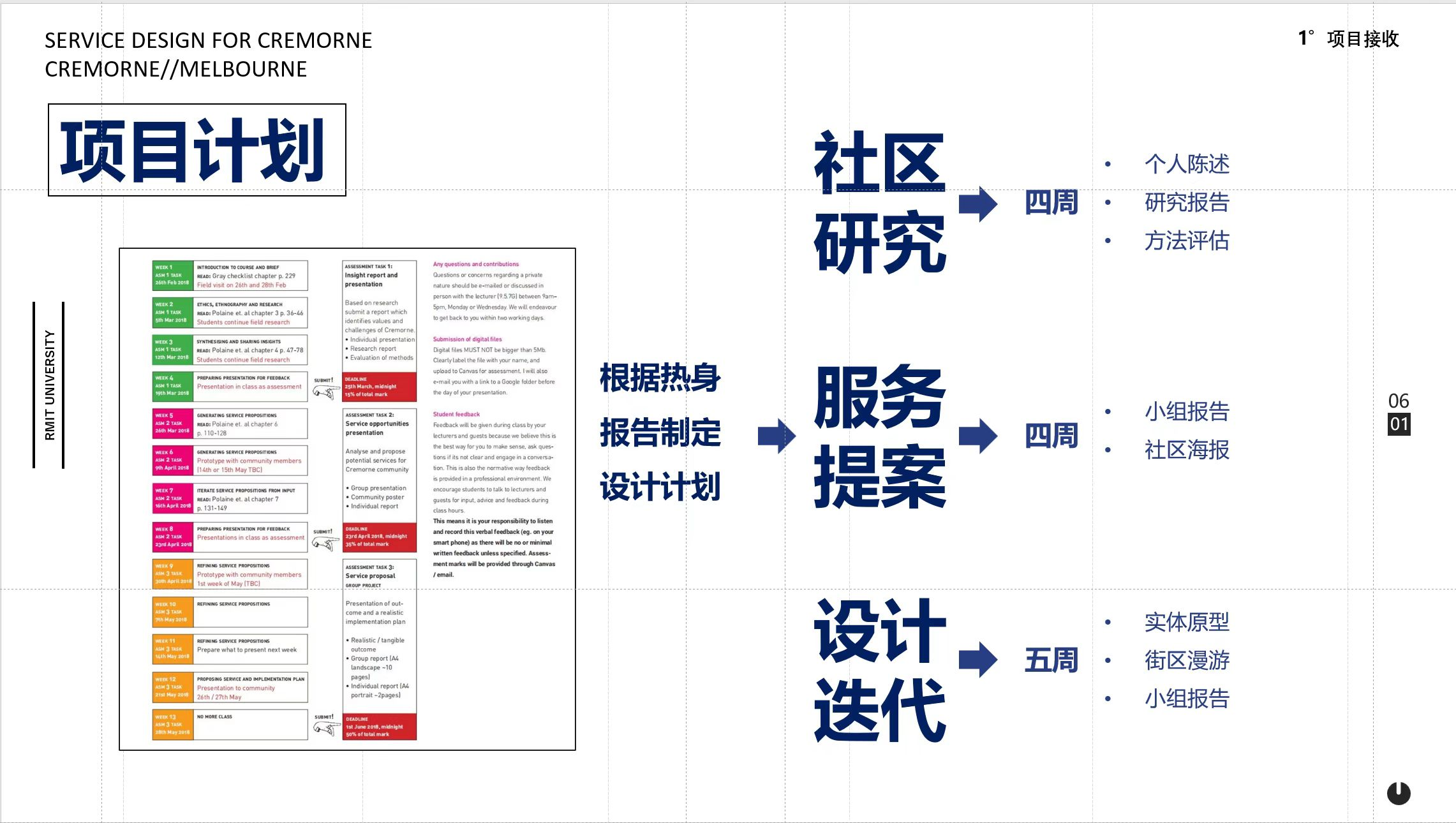 项目一: 墨尔本地区共创式社区服务项目,通过项目,讨论如何基于服务设计理论进行用户调研,其中包含用户调研方法、结构、过程等。