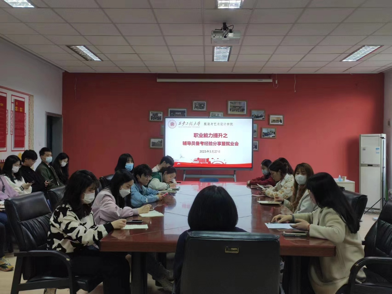 研究生的生涯规划与职业发展意识,进一步加强研究生就业指导,快速调整就业心态,提升学生就业积极性,“职业能力提升之辅导员备考经验分享暨就业会”于2023年3月27日晚18时在服装楼党建办公室举行。党委副书记郭欣欣、辅导员张一诺及三十多名研究生参加此次会议。