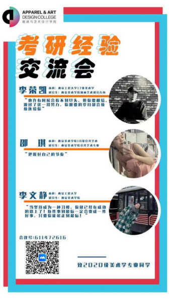 服装学院2020级美术学专业于5月10日晚9点召开线上2020级考研经验交流会,此次会议邀请了西安美术学院2022届毕业生邵琪,以及红桃视频