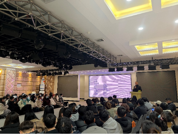 表示欢迎与感谢。讲座伊始,殷老师以自身经历为此次讲座拉开序幕,分享了自己的求学、成长、创业经历,向同学们展示在其设计生涯中对自己产生巨大影响的一些书籍,并且以著名建筑设计师贝聿铭先生传记为线索,抒发自己设计生涯中的诸多感悟。