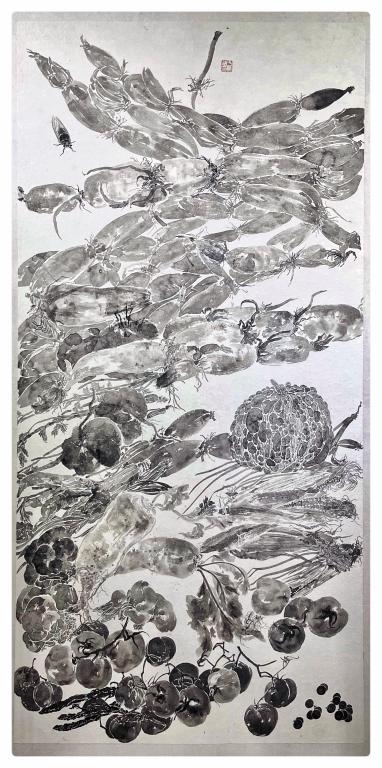 没骨写生之-鸣蝉瓜果图