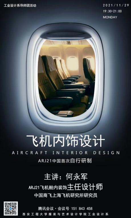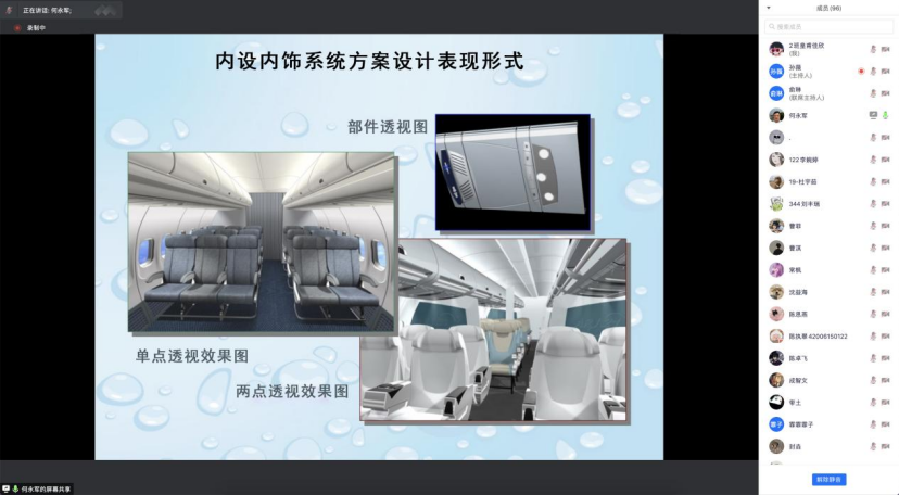 工业设计系于2021年11月29日通过腾讯会议召开三全育人导师团系列活动--《飞机内饰设计》专题讲座。本次分享会特邀中国商飞上海飞机研究所何永军研究员,分享飞机内饰设计的发展和现状以及工业设计在飞机内饰设计中的作用。本次会议由工业设计系主任孙薇老师主持,工业设计系教师及工业设计专业本科及研究生共计130余人参加。