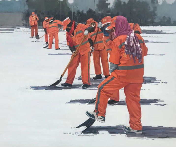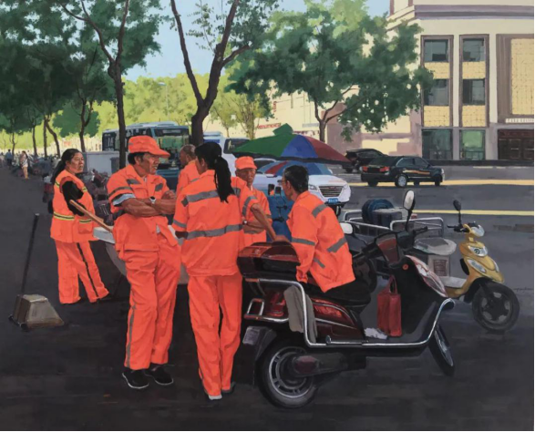四、王肖霏老师油画作品《环卫工的会议》入选“第九届全国(大芬)中青年油画展”,该展览由中国美术家协会、中共深圳市委宣传部主办。本次展览共收到全国各地美术家参评油画作品2365件,经初评、复评,评选出196件入选作品,展览将于2020年12月2日在深圳红立方公共艺术空间开幕。