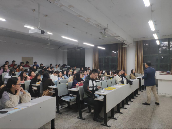黄涛总经理先是从国际环境、中美关系等方面分析了当下的市场环境,其中反复提及改革进入深水区。在这样的形势下,面对着激烈的竞争,黄涛总经理用“谁有金刚钻就能揽瓷器活”的形象比喻来告诉大家未来有无限的发展可能。然后,黄总从科学角度与历史角度,来分析了当下的疫情,表示企业对于疫情要有长期的规划,要留有空间。黄总认为疫情筛选出了生存力强的企业,并且疫情会让今天还存在的内衣企业更坚定地走下去。之后,黄总对翡丽公司在疫情后的规划进行了说明,并鼓励同学们不要怕犯错,趁着年轻勇敢的“犯错”,但不要再无意义的地方犯错。讲座的最后,黄涛总经理向2017级即将就业的同学们抛出了橄榄枝。