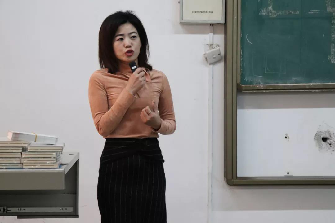 接着陕西区域经理余敏女士以三福时尚2020年春夏时装发布会秀场视频作为引入,讲述了服装行业当下及未来的流行趋势。她以大量的流行元素在服装中的实际应用图片进行详细讲解,让同学们对男装、女装以及内衣行业的流行元素、流行色系有了充分认知。余敏女士还向同学们介绍了各大品牌在消费转型的大背景下,推出的国潮元素、运动风潮、IP联名等现象,进一步分析服装流行趋势的发展。