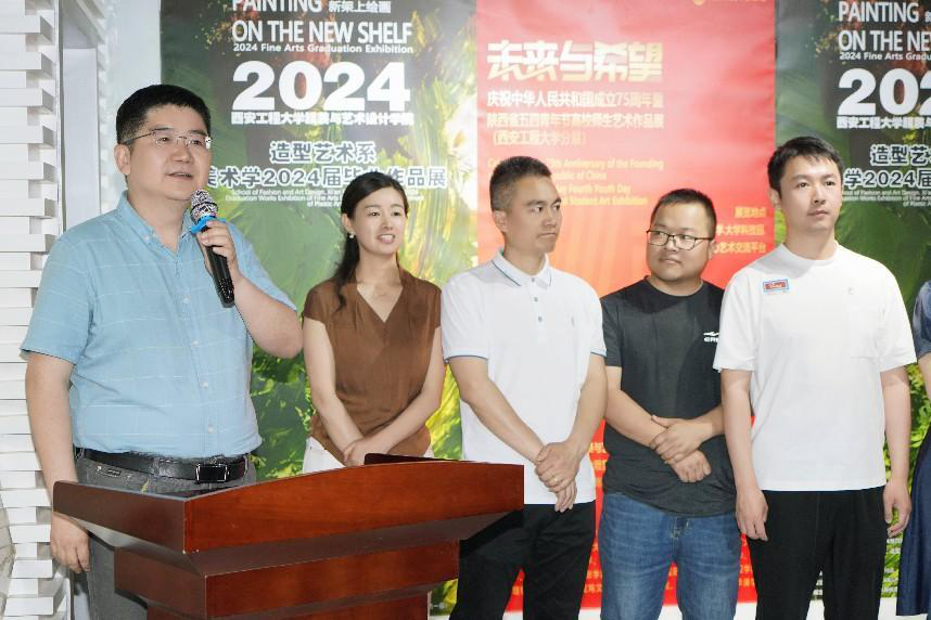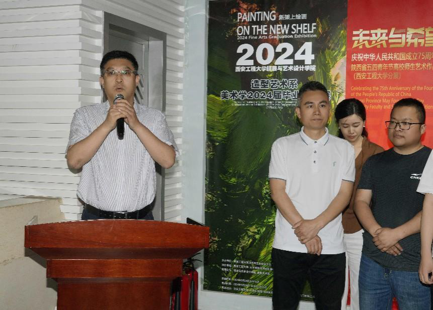 开幕式上,苏博对展览给予充分肯定,对展览的成功举办表示热烈祝贺。他表示展出的不仅仅是作品,更是凝结了师生共同努力的硕果。承载着学院对美术学专业对即将毕业的学生更多的期望,也是引领着专业低年级学生不断向前奋进的一种精神力量。姜涛代表西安美术家协会预祝展览圆满成功,他对学生作品质量给予高度评价,指出通过老师们的指导,作品呈现出热爱生活、关注生活、关注世界的倾向,学校为美术界输送了新生的青年艺术人才,也展示出陕西省高校美术学专业学生应有的水平。他表示兄弟院校艺术专业之间应加强交流与学习,共同进步。王志刚表示同学们的作品让艺术教育中心熠熠生辉,是一场视觉盛宴。希望服装学院的教师能够聚力更多资源,与大学科技园艺术平台一起把人才培养、服务社会、文化传承创新的职能发扬光大。