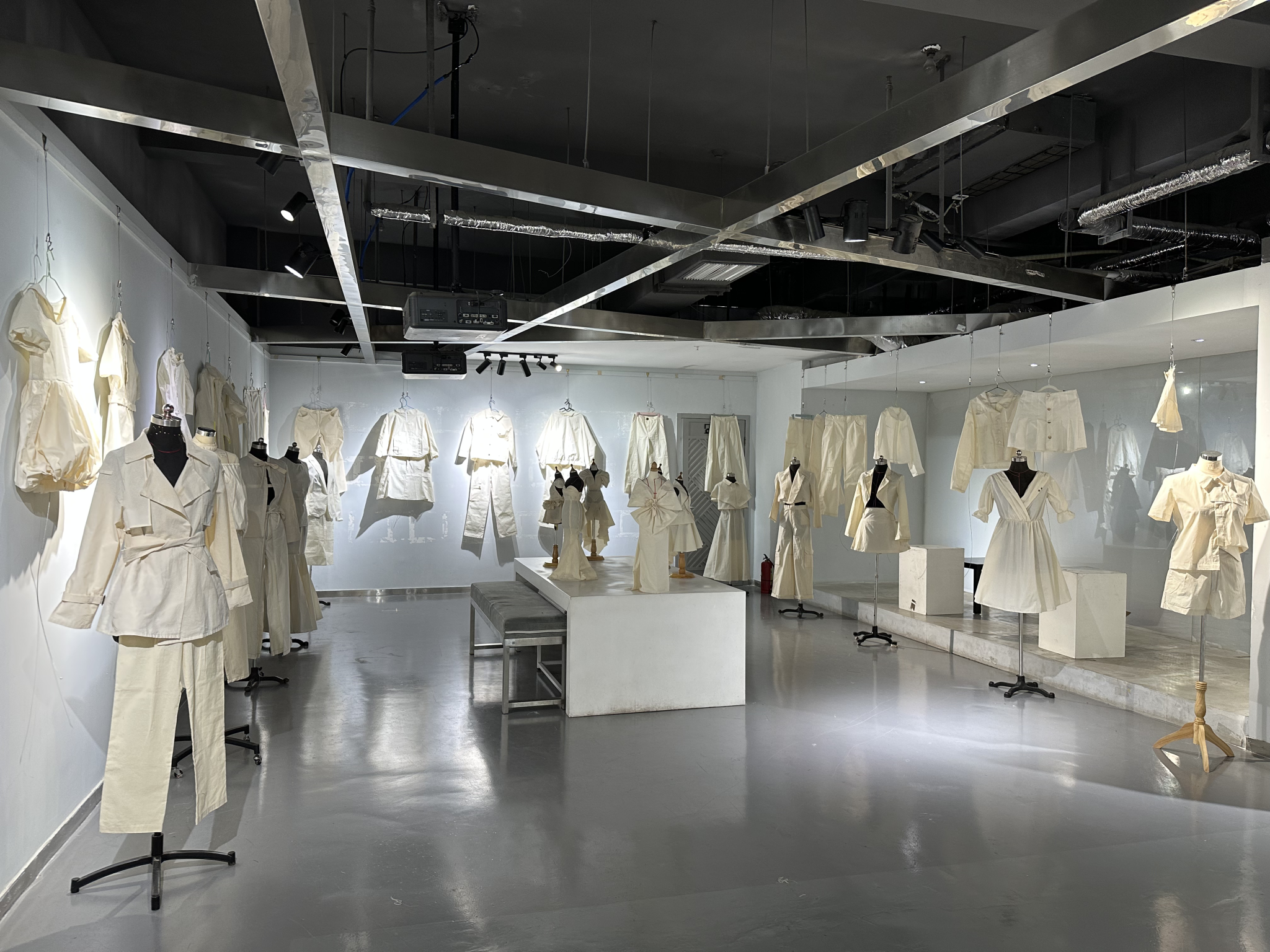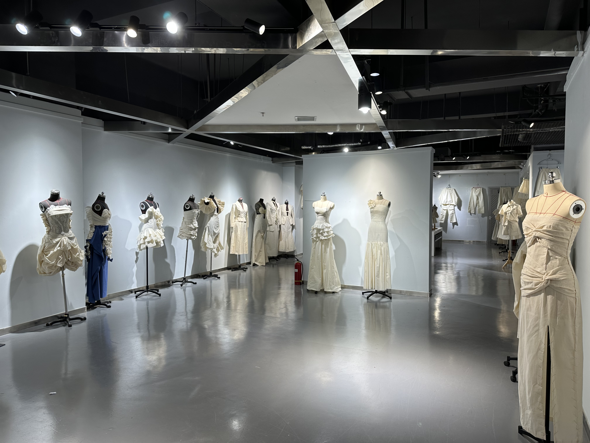 本次作品静态展是服装设计与工程专业2022级学生的结课作业,共展出作品141件,是在刘静伟教授“设计思维”和“设计美学”课程基础上,由戴鸿、厉谦、冀艳波、张睿、王玉娟、王煜曦、倪华倩等老师共同讲授的“立体裁剪”和“女装结构设计与工艺”课程结课作业。作品的设计与制作过程通过平面裁剪和立体裁剪相结合,基于对学生审美能力和创新思维能力的培养,将服装所呈现的款式与内在所表达的风格相对应,实现服装造型设计到服装结构设计的有效转化。