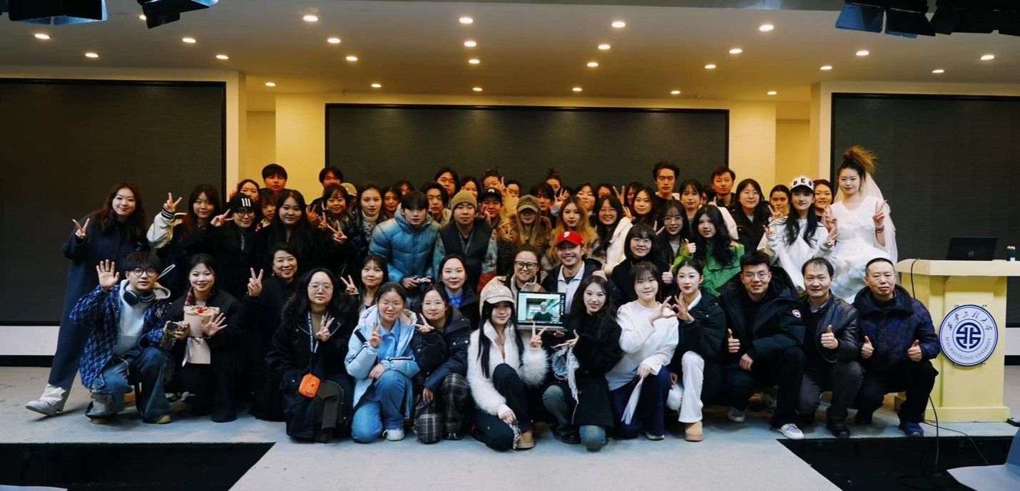 赵小鱼代表本门课程教师作开幕致辞。23级中英合作办学服装与服饰设计专业同学在服装设计调研拓展与实践课程中精心准备的59套设计作品依次亮相。这些作品造型各异、独具创新,充分展现了学生们对创造性立裁思维与平面剪裁知识的融合,以及在服装设计上廓形的创新与亮点。从二维效果图到细节款式图设计,再到经过纸胚,布胚和三次试衣后完成的成品,学生们历经层层打磨,实现了从设计到成衣完型的闭环训练,完成了设计思维的提升和制版工艺上质的飞跃。