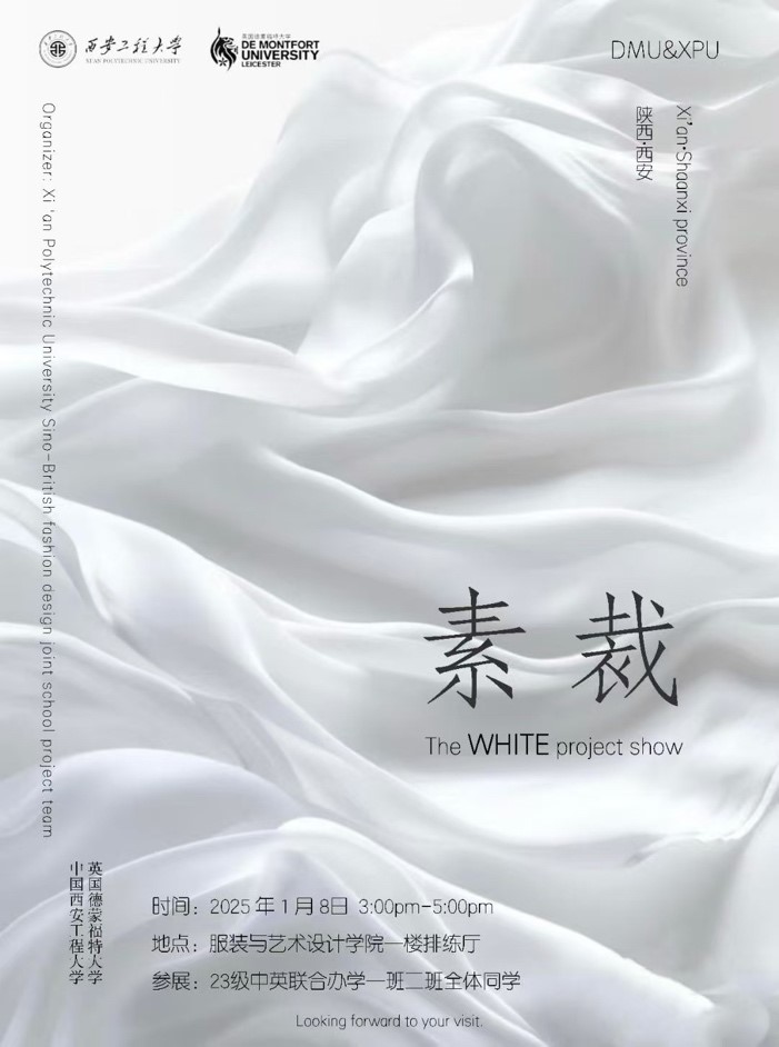 此次素裁”——The white project大秀,是中英合作办学学生们学习成果的一次集中展示,通过本课程,学生能够明晰在国际视野下,服装设计本科教育所秉持的严格要求与高标准,进而在学习过程中真切感受设计的深层目的与意义,向着更高层次的服装设计专业素养稳步迈进。