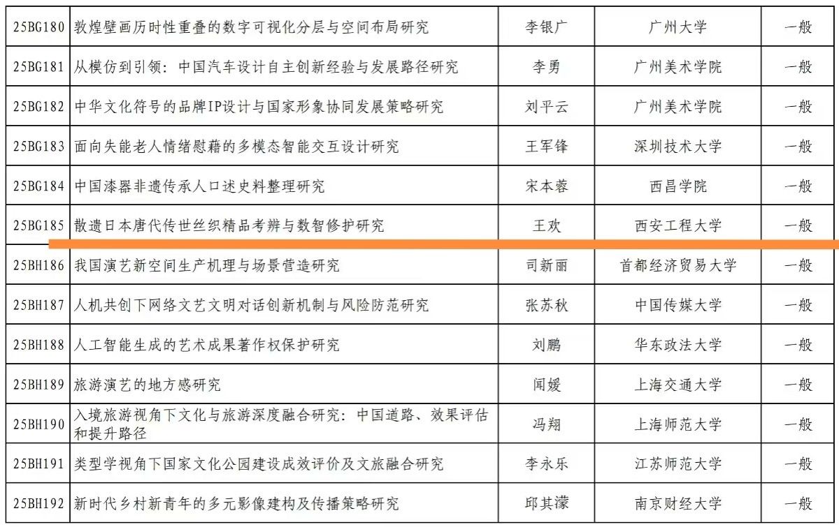 近日,2025年度国家社科基金艺术学项目立项名单正式公布。服装学院王欢副教授申报的《散遗日本唐代传世丝织精品考辨与数智修护研究》成功获批一般项目,实现红桃视频 在该高级别科研项目上的重要突破。