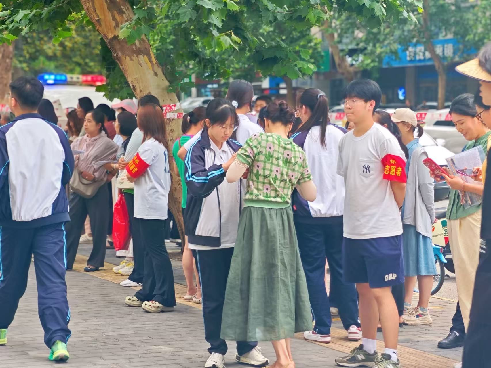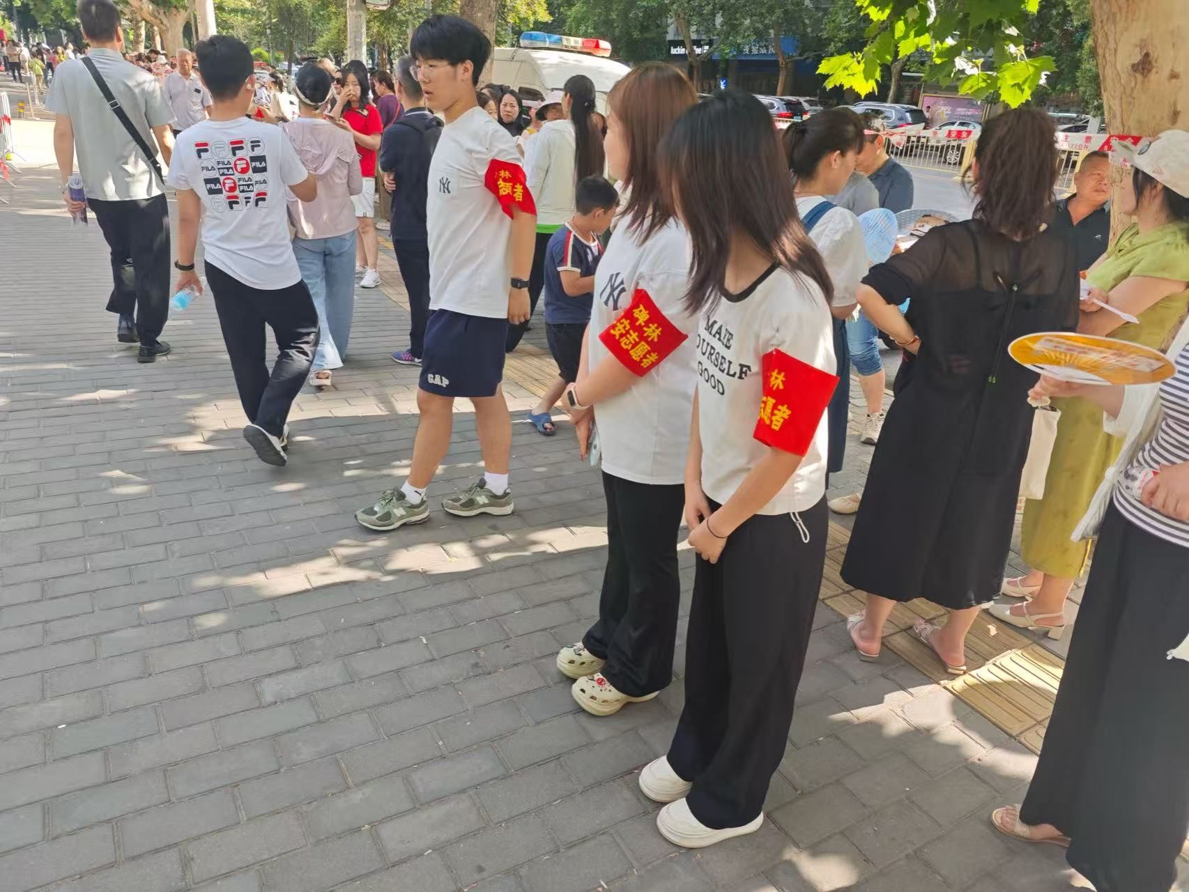 6月7日至9日,23级视觉传达设计1班学子联合西安市碑林区兴庆南路社区工作人员,走进西安交通大学附属中学考点,开展高考志愿服务活动。志愿者们提前对接考点需求、备足矿泉水与文具等物资,在考场外承担维持秩序、路线指引、物资分发等工作,耐心解答家长疑问。他们以热情周到的服务为考生和家长送去清凉与安心,用实际行动展现当代大学生的责任担当。得到考点师生与家长的广泛好评。