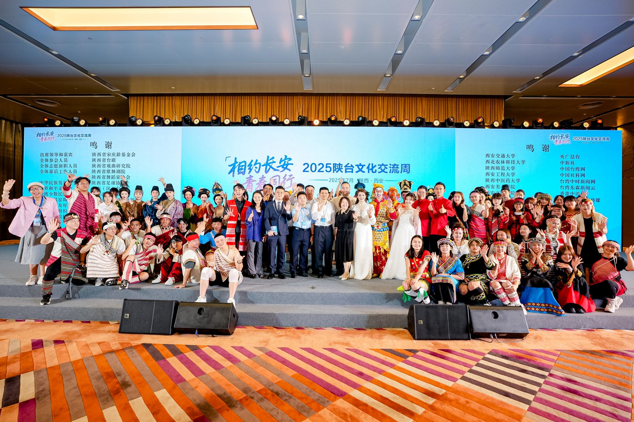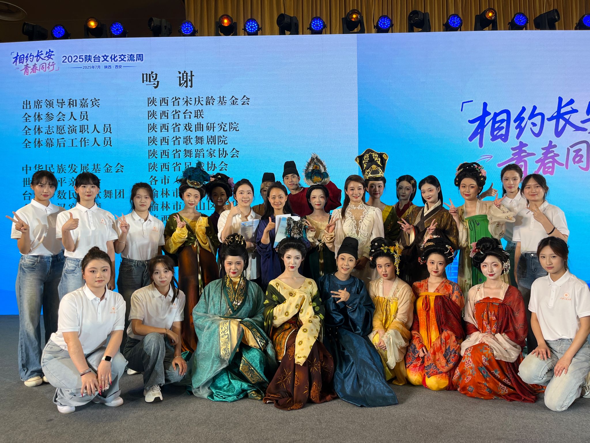 7月8日上午,"相约长安 青春同行"——2025陕台文化交流周开幕式在西安盛大举行。本次活动以"弘扬中华文化,谱写青春华章"为主题,汇聚海峡两岸600余名嘉宾代表。我校服装学院8名学子与汉服研究院师生联袂参演,展现西工程大青年风采。
