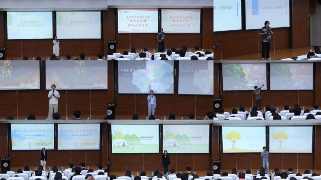 苏博在致辞中表示:"演讲是思想的碰撞,希望同学们通过这个平台提升综合素养,成为有深度的设计者。"本次决赛以"自我悦纳"、"打破标签"等为主题,10位晋级选手用真挚的情感和独到见解展现了青春风采。比赛中穿插的歌曲和钢琴演奏为现场增添了艺术氛围。