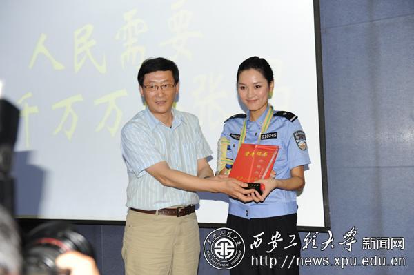 艺术设计专业,被我校授予“优秀校友”荣誉称号。曾先后荣获陕西省“三八红旗手”、西安市“杰出青年特别奖”、“个人一等功”等荣誉称号,被群众誉为西安“最美女交警”。现为西安市公安局交警支队莲湖大队一中队民警,三级警司警衔。