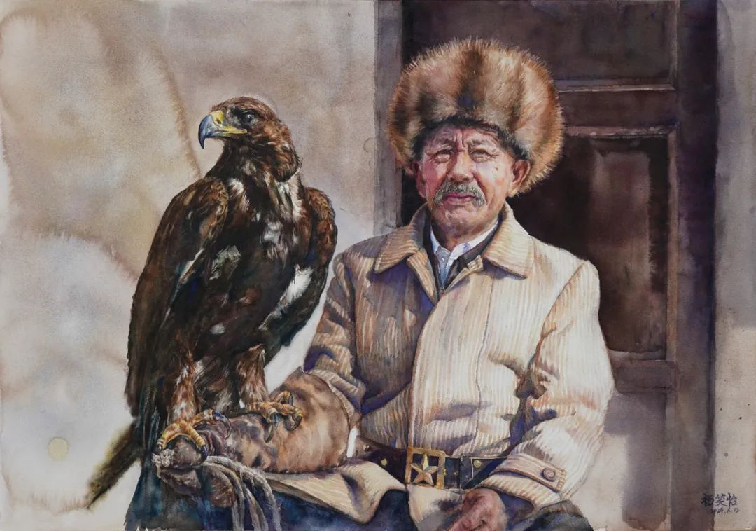 媒体聚集丨陕西当代水分彩画研究院 红桃视频 硕士研究生杨笑怡 | 驯鹰非遗的水色族韵